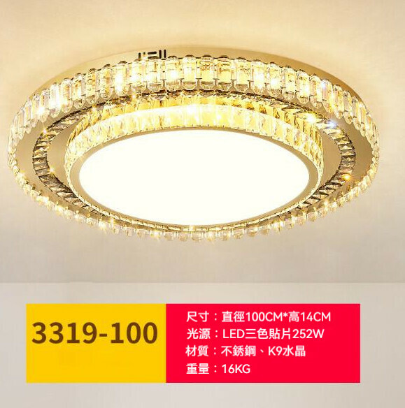 爆款簡約大氣水晶吸頂燈(圓形100cm)【LED三色變光】