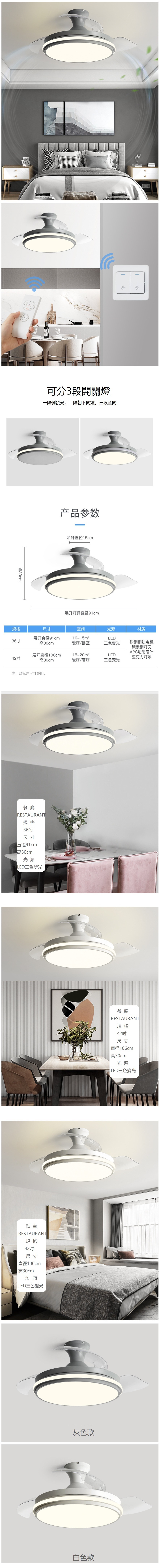 爆款簡約智慧變頻隱形風扇燈吸頂燈(灰色36寸變光60W+遙控))