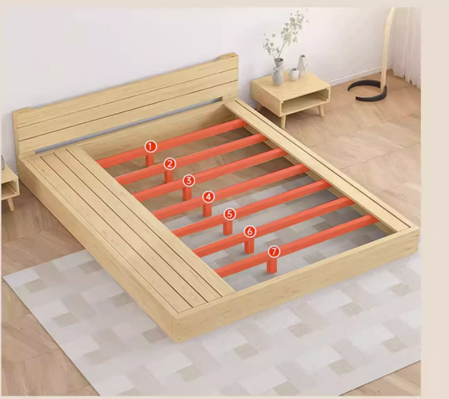 爆款簡約實木無床頭落地硬板地台床(氣質灰軟包)(尺寸:長1.9米*寬1米*高17.5CM)