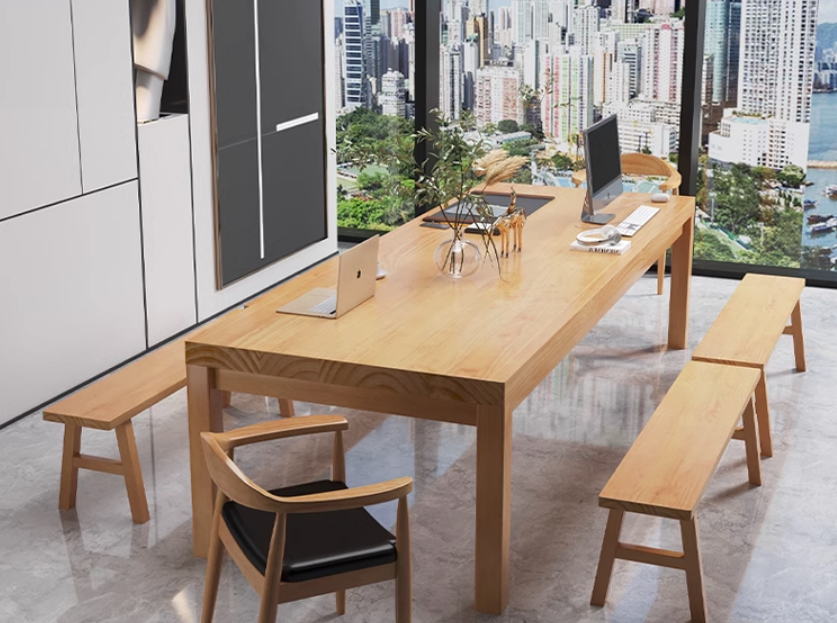 爆款簡約全實木長方形桌(尺寸:280*100*75CM,厚度5CM)