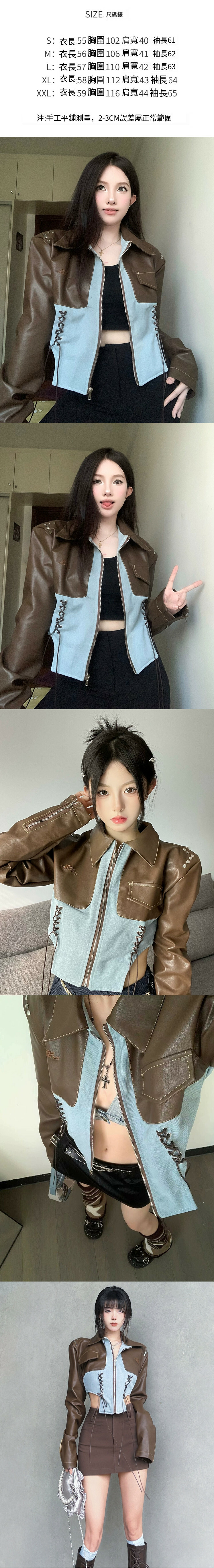 爆款拼接皮衣外套(藍色)(S/M/L/XL/2XL下單後與客服聯系發貨的尺碼)