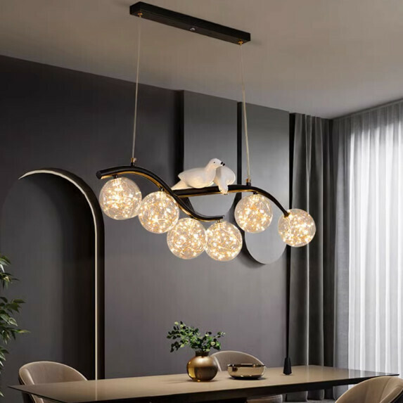 爆款滿天星小鳥玻璃天花吊燈(4頭黑色款 白光)