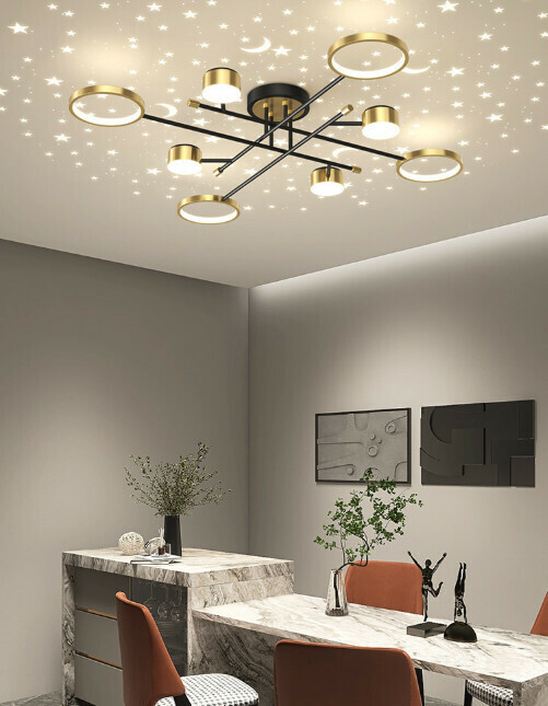 爆款滿天星簡約吊燈(黑色-10頭)【LED無極調光+遙控】