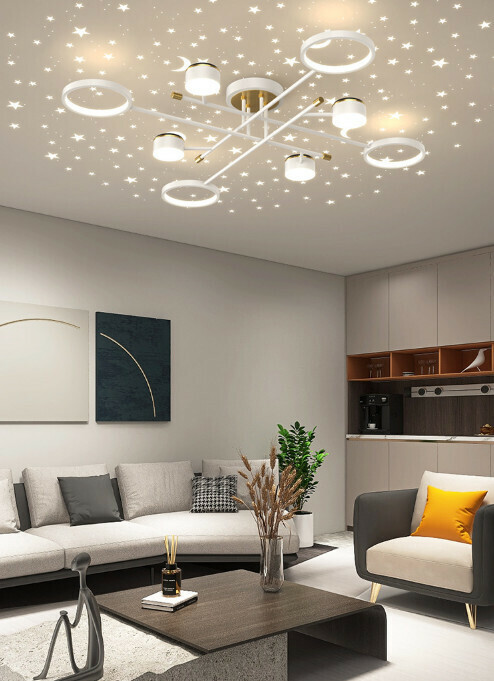 爆款滿天星簡約吊燈(黑色-8頭)【LED無極調光+遙控】
