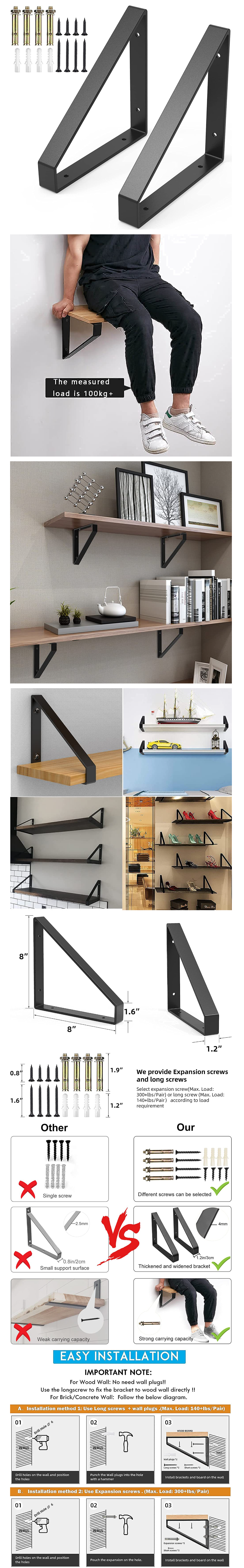 爆款牆上三角架支架置物架直角支撐固定層板托(黑色,20*3*20)