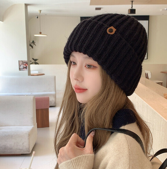 爆款保暖護耳套頭針織帽(A-489卡其色)
