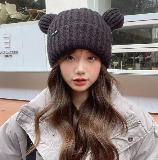 爆款保暖護耳套頭字母針織帽(A-357黑色)