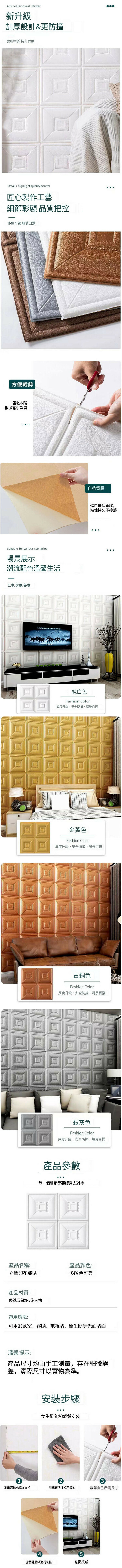 爆款防水防潮防撞軟包自粘3D立體墻貼磚紋壁紙【正回字白色】【60*60cm*8mm】