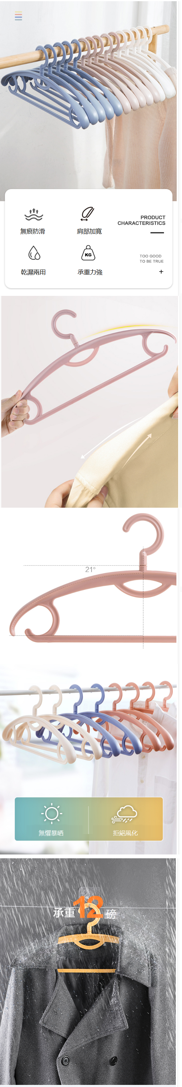 爆款寬肩無痕衣架(淡粉色)(10個)