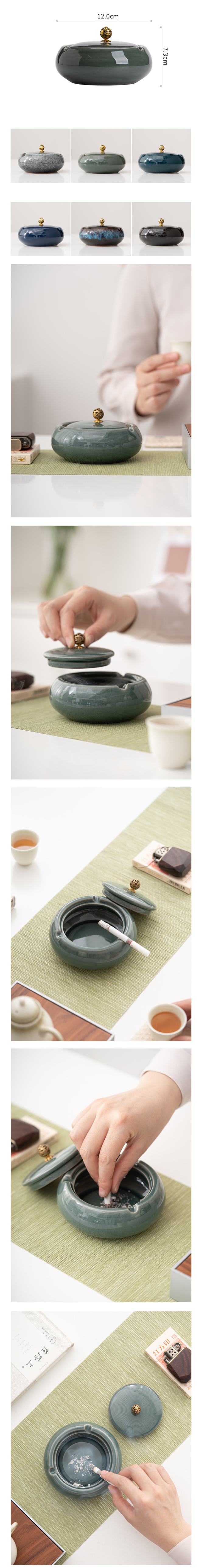 熱推茶碗茶具(墨圓煙灰缸---墨綠(帶蓋))