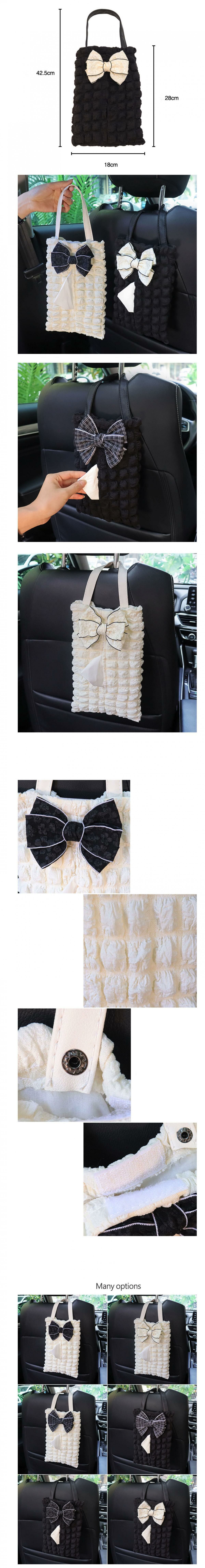 熱推車載掛式紙巾收納袋(白色 格子結)