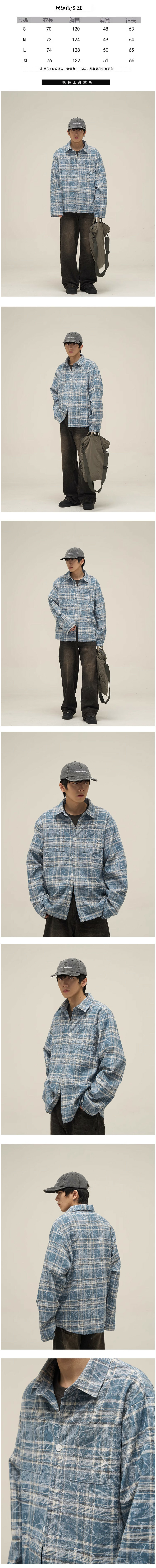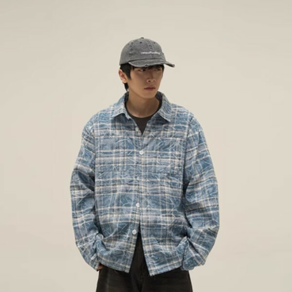 熱推水洗格子長袖襯衫【藍色S-XL碼,下單後與客服確認發貨尺碼】