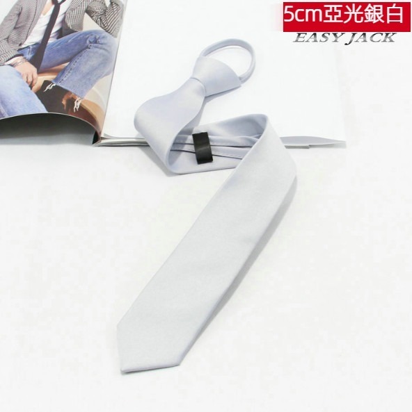 熱推5cm窄版拉鍊領帶(光面銀色)