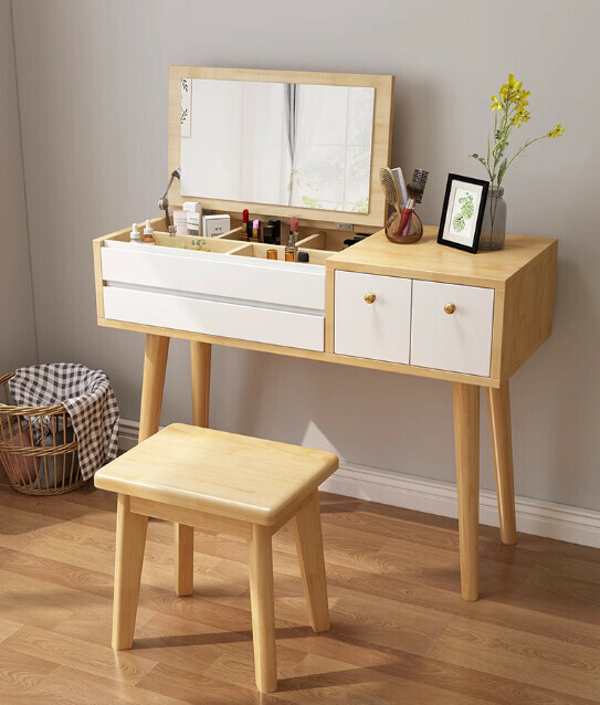 熱推全實木北歐現代簡約梳妝台【1.2米原木配白色】