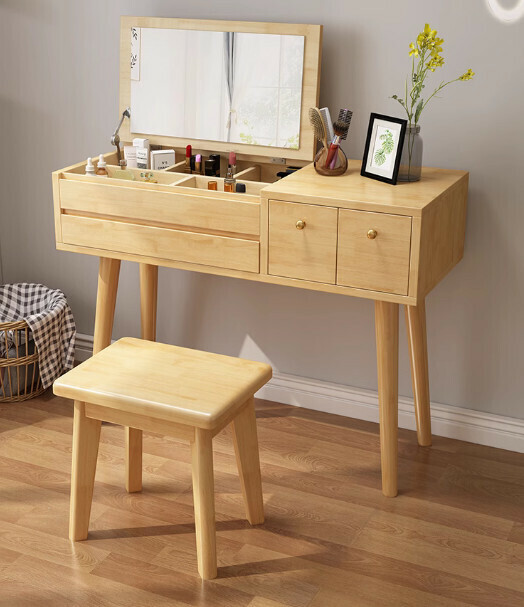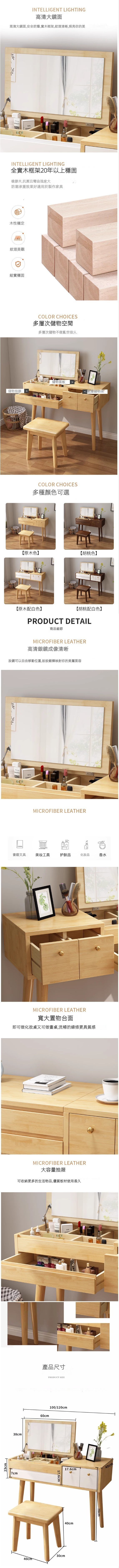 熱推全實木北歐現代簡約梳妝台【1.2米胡桃配白色】