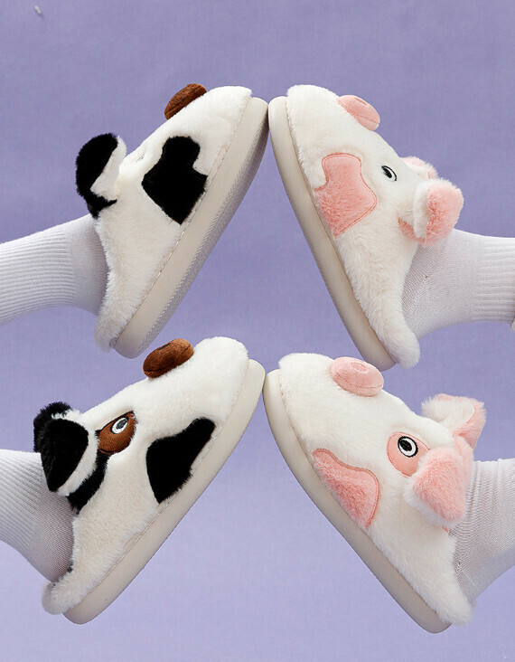 熱推防滑加絨保暖棉拖鞋(妃紅色-小豬)【36-41碼】【下單後聯絡客服確認發貨尺碼】