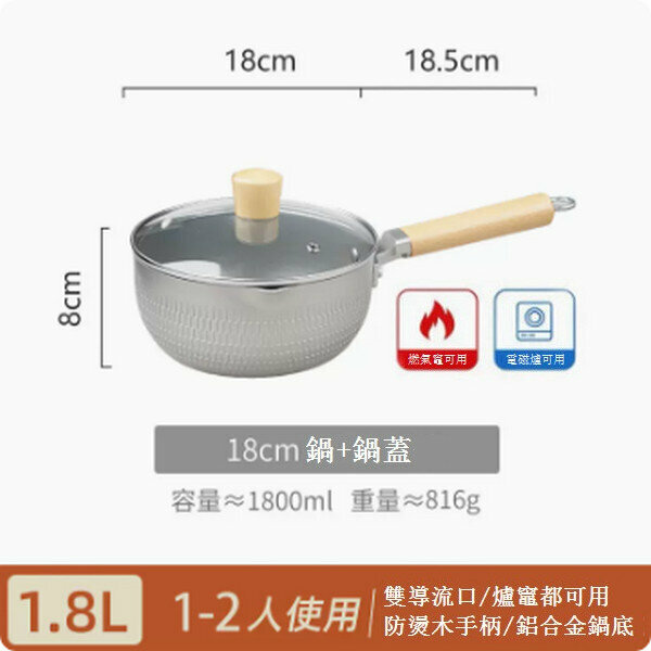 熱推極光銀不粘鍋小奶鍋【18cm極光銀 加蓋】