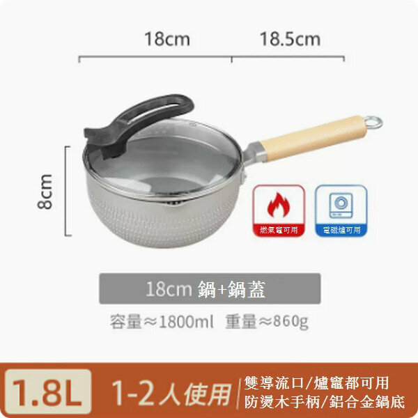 熱推極光銀不粘鍋小奶鍋【20cm極光銀 加蓋】
