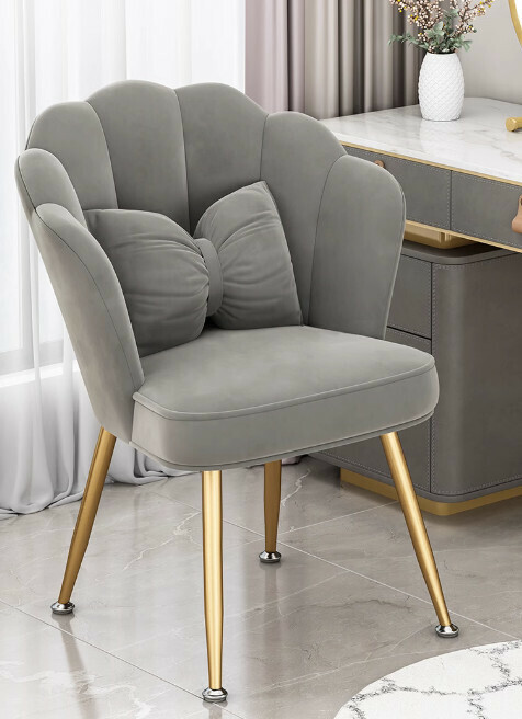 熱推靠背化妝椅(湖藍色-金腿乳膠款+蝴蝶腰枕)
