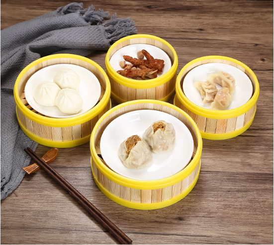 熱推竹制蒸籠(陶瓷碟+蒸籠)(規格:15.5CM碟子+18CM蒸籠)