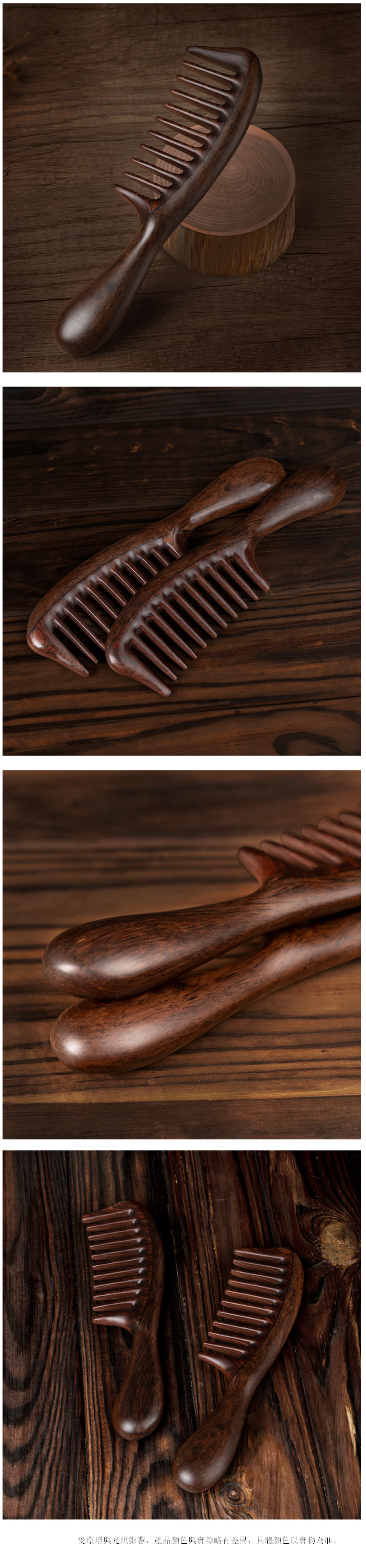 熱推禮盒裝黑金檀木梳 (整木手柄寬齒20cm)
