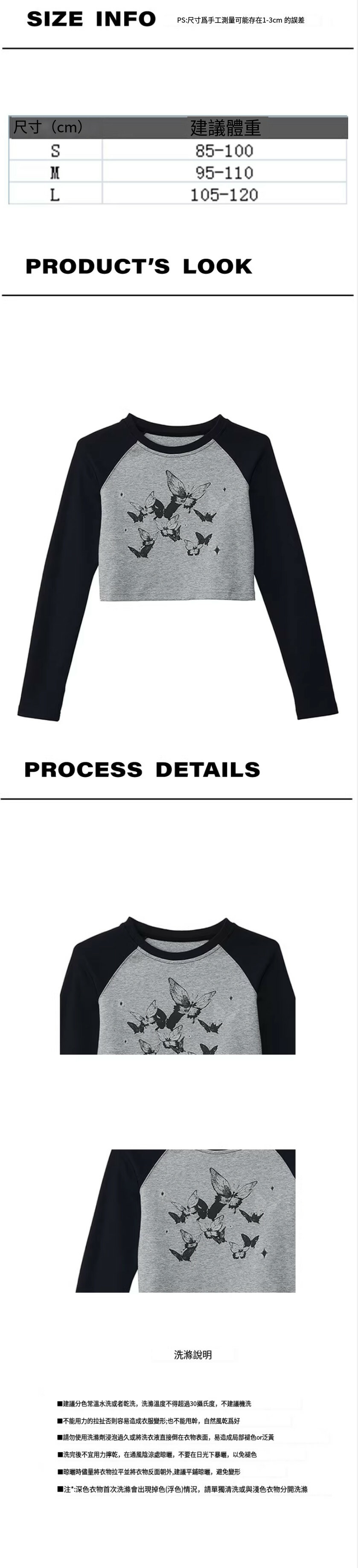 熱推蝴蝶印花T恤女長袖上衣(黑色)(S/M/L碼,下單後請與客服聯繫發貨尺碼)