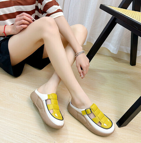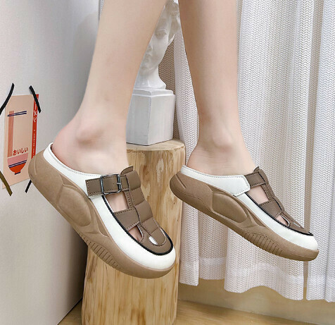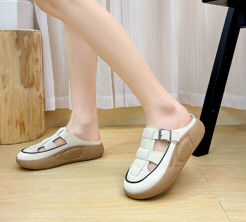 熱推休閒一腳蹬平底半拖鞋(米色)【35-40碼】【下單後聯絡客服確認發貨尺碼】