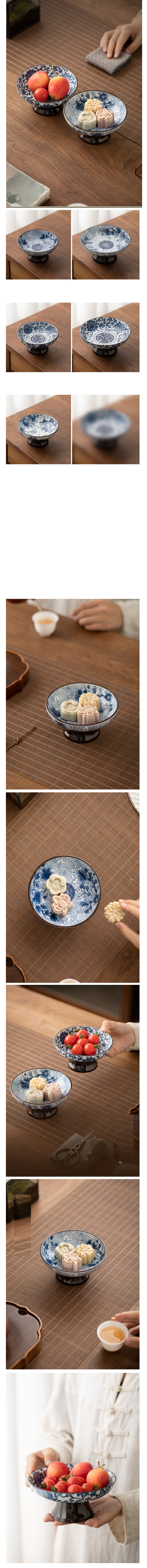 熱推陶瓷高脚點心盤水果盤(纏枝蓮--青花果盤【小】)