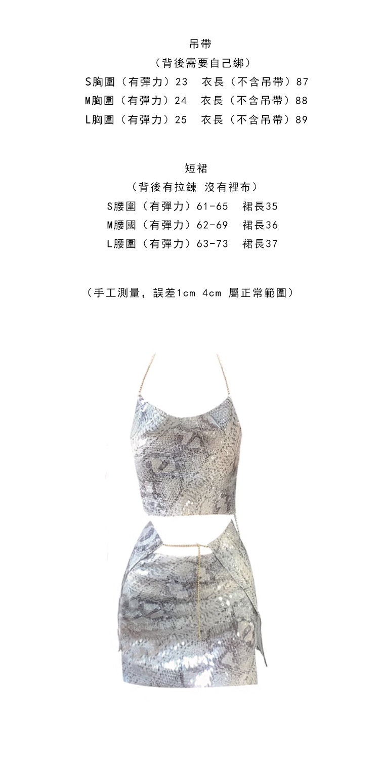 熱推鏈條吊帶半身裙套裝(吊帶+半裙)(尺碼:S/M/L)(下單後聯絡客服確認發貨尺碼)