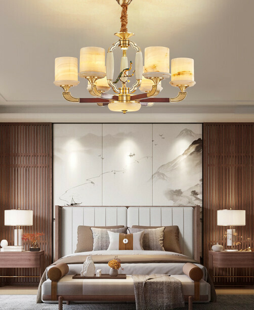 熱推中式全銅玉石吊燈(10頭)【LED三色變光】