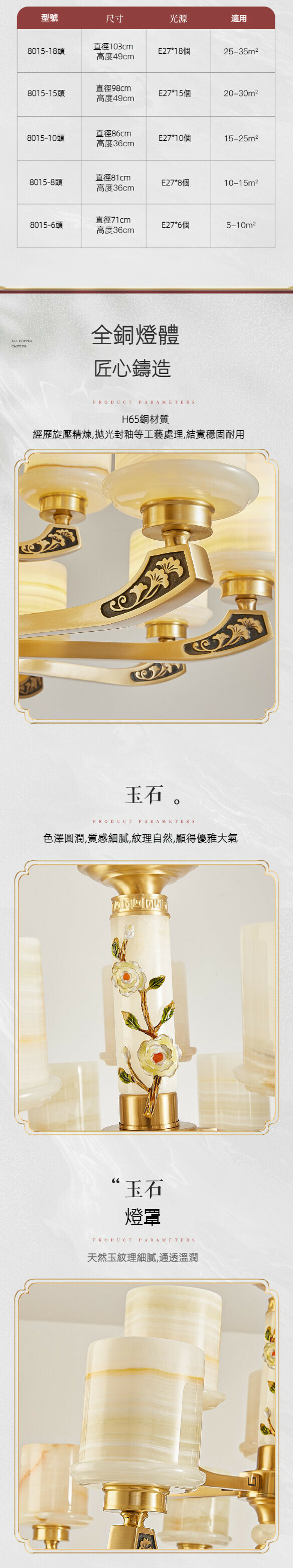熱推中式全銅吊燈(10頭)【LED三色變光】