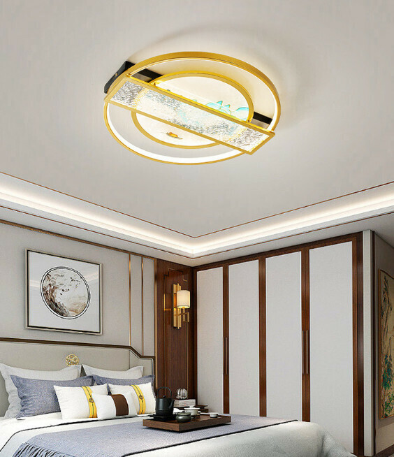 熱推中國風琺瑯彩水波紋吸頂燈(圓形50cm)【LED三色變光】