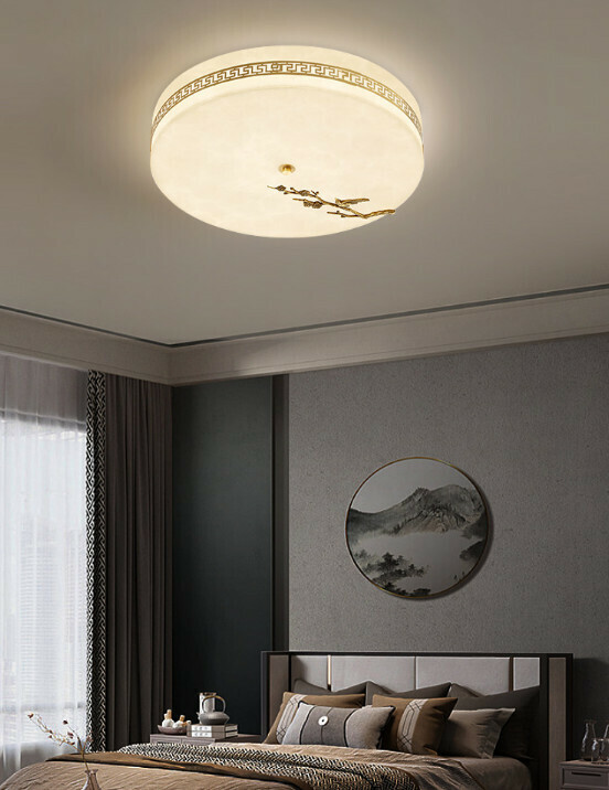 熱推中式全銅仿雲石吸頂燈(圓形50cm)【LED三色變光】