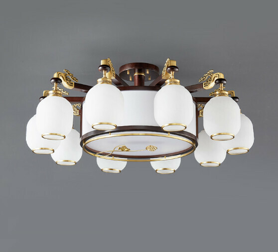 熱推中式客廳玻璃罩吊頂燈(【87006款】10頭吊燈 三色光源)