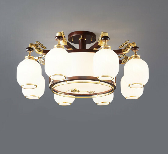 熱推中式客廳玻璃罩吊頂燈(【87006款】8頭吊燈 三色光源)