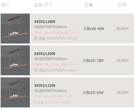 熱推中式長條吊燈(【81051款】長150cm 三色變光)