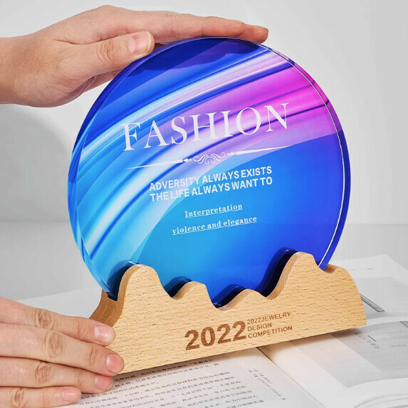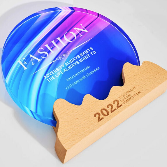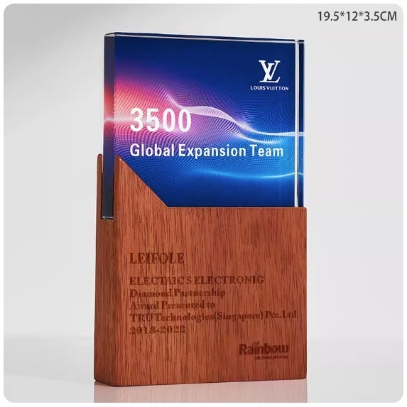 熱推彩印水晶實木獎杯定制(C_04款 沙比利水晶彩印(下单後聯絡客服確認(字及圖樣)