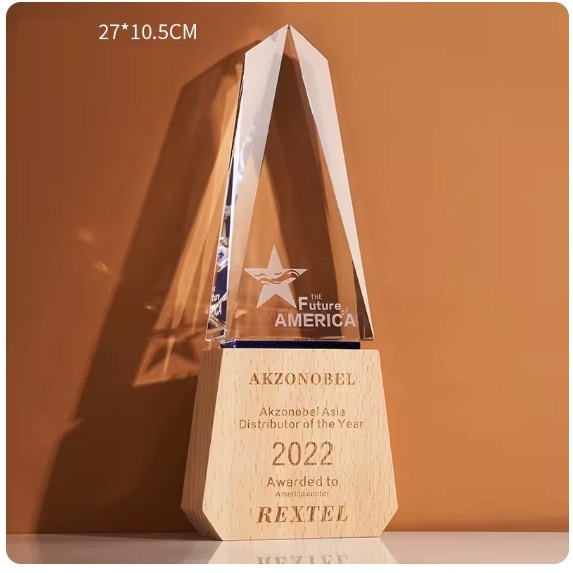 熱推彩印水晶實木獎杯定制(H_02款 櫸木水晶噴砂(下单後聯絡客服確認(字及圖樣)