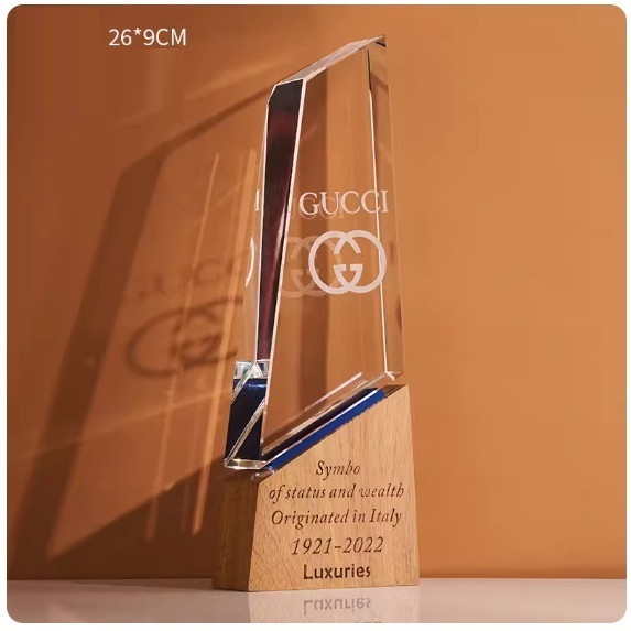 熱推彩印水晶實木獎杯定制(J_02款 沙比利水晶噴砂(下单後聯絡客服確認(字及圖樣)