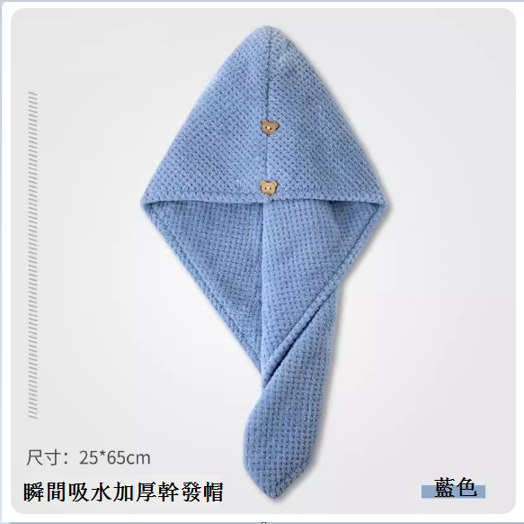 熱推珊瑚絨雙層加厚幹發帽【藍灰色】