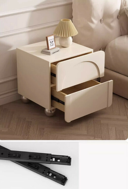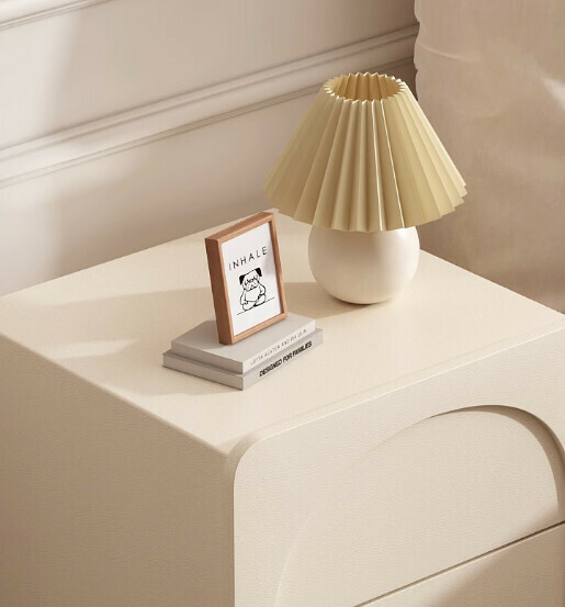 熱推奶油風皮質床頭櫃【奶白色(多層實木框架+實木抽屜款)】(尺寸:長40x寬40x高48cm)