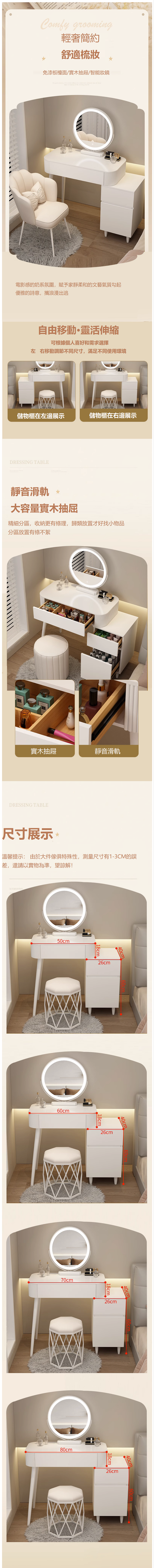 熱推奶油風小戶型梳妝台(Q款80桌+櫃+智能鏡+圓凳)