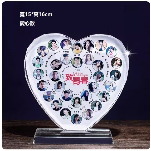 熱推水晶紀念禮物定制(寬15*高16CM 愛心款(下单後聯絡客服確認(字及圖樣)