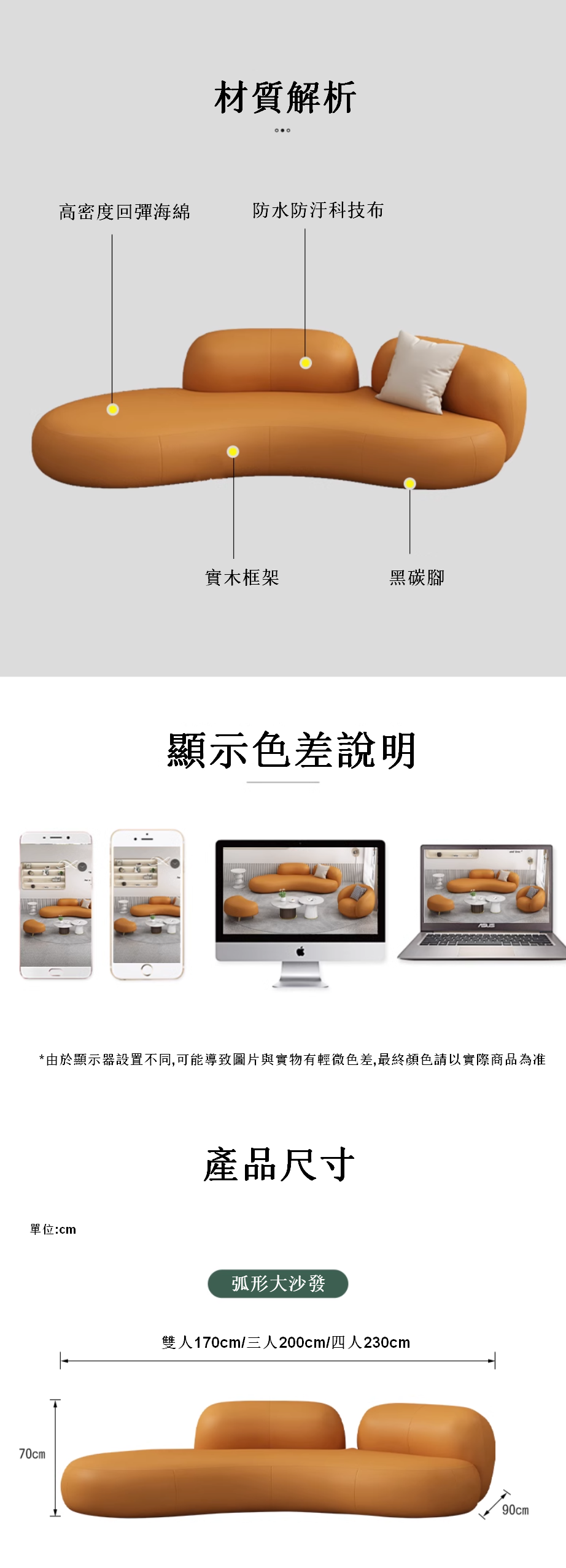 熱推弧形科技布沙發(2.0米三人位)
