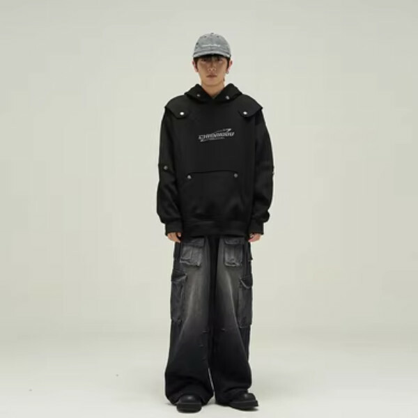 熱推解構廢土風連帽衛衣【黑色加絨銀狐絨S-XL碼,下單後與客服確認發貨尺碼】