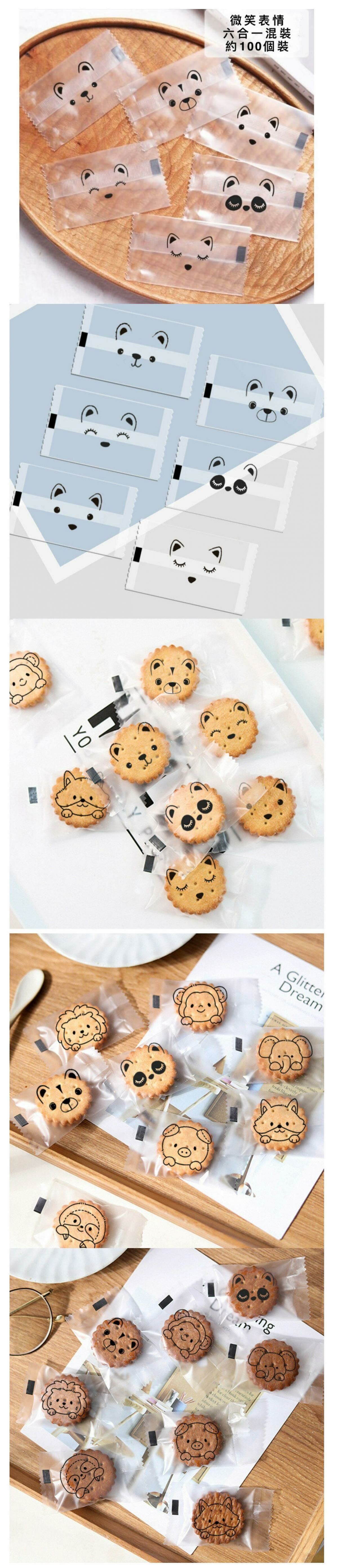 熱推一次性透明機封包裝袋 糖果餅乾小食食物袋 不帶黏性(微笑表情六合一 約100個裝 4.5*7.5cm)