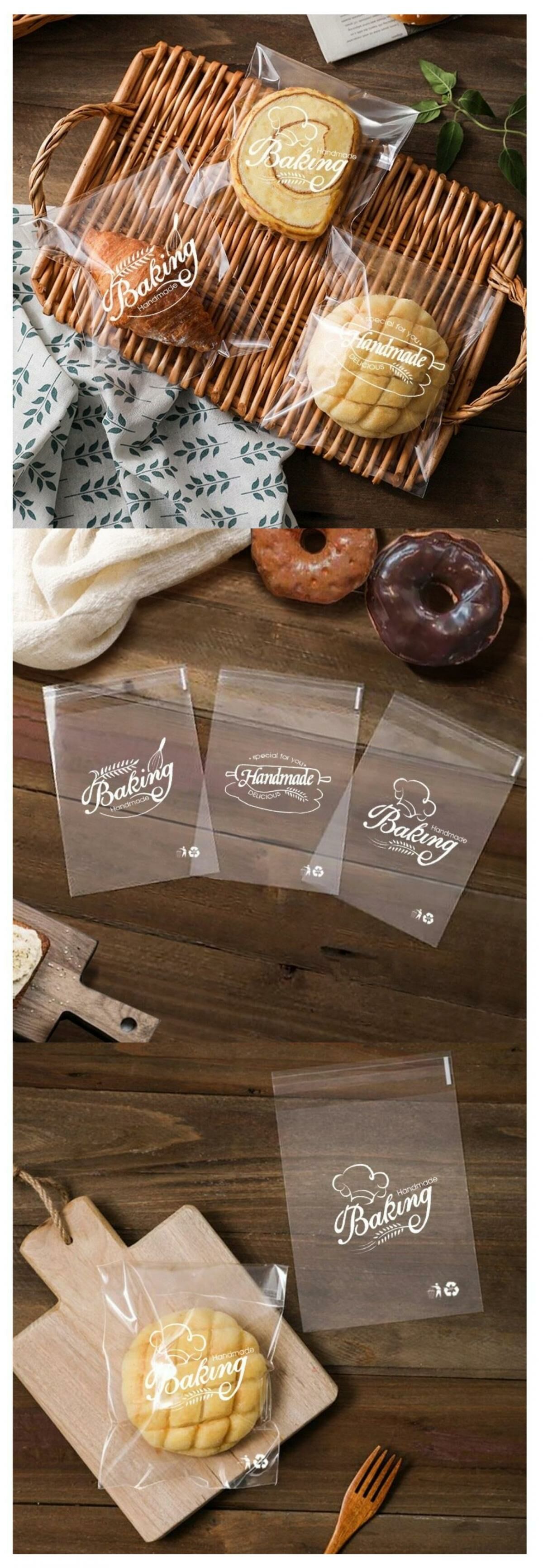 熱推一次性透明帶黏性包裝袋 面包吐司餅乾小食食物自封袋 密封袋(混合英文 約100個裝 15*18+3cm)