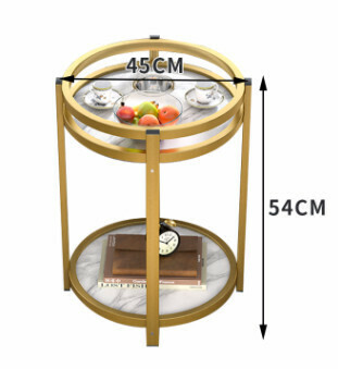 熱推雙層簡約茶幾(白色大理石紋+金色架)【尺寸:長45cm*寬45cm*高54cm】