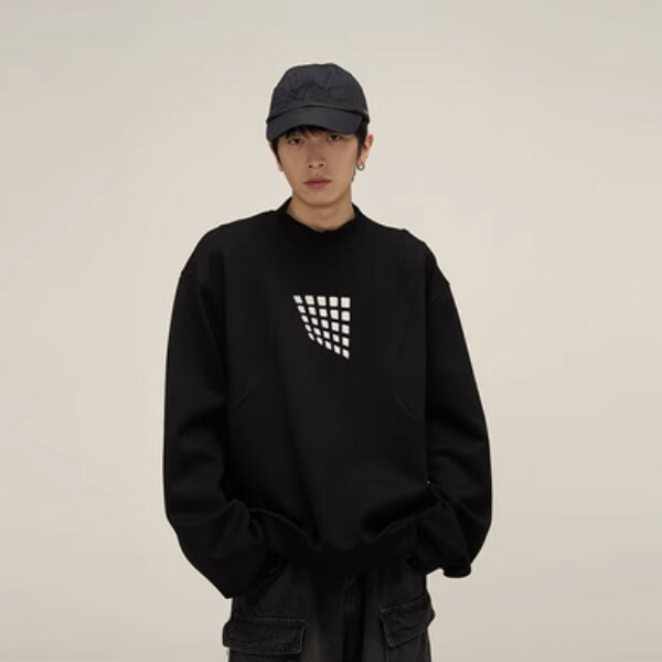 熱推刺繡空氣层拼接圓領衛衣【黑色M-XL碼,下單後與客服確認發貨尺碼】