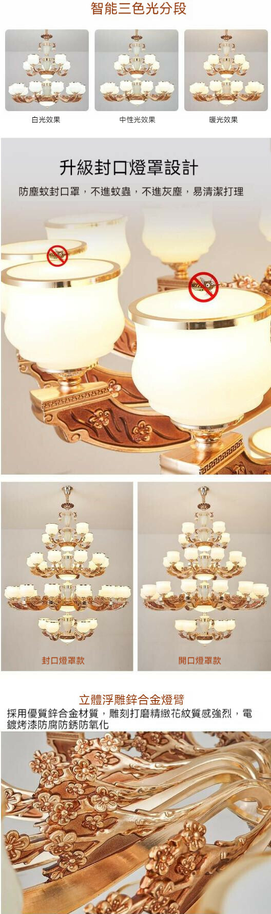熱推歐式水晶吊燈(6頭)【LED三色變光】